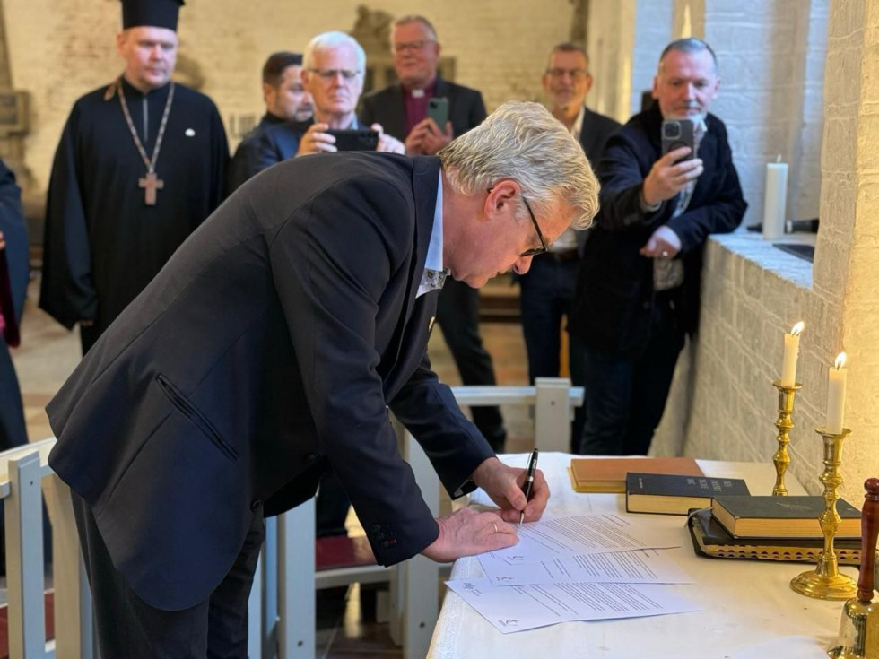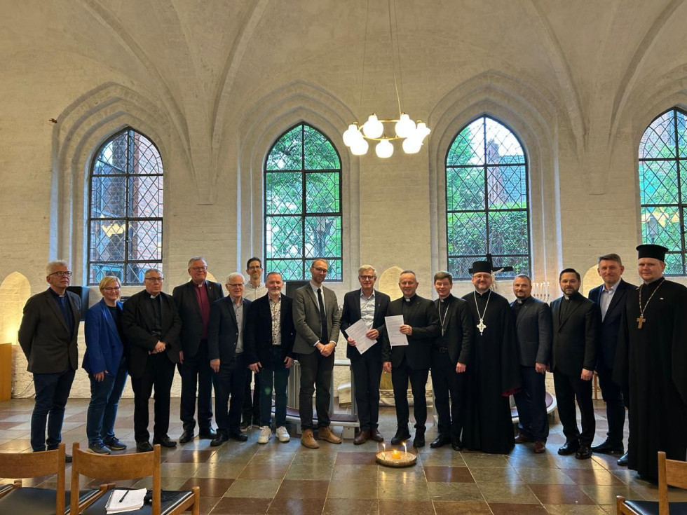 The next stop in the UCCRO delegation’s visit to Copenhagen was a meeting with the leadership and members of the NCCD, held at the Lutheran church “House of the Holy Spirit.” The meeting, conducted in a spirit of fraternal fellowship, concluded with the signing of the joint Declaration of Solidarity “When Time Come” by the Ukrainian Council of Churches and Religious Organizations and the National Council of Churches in Denmark. On the Ukrainian side, the declaration was signed by Bishop Valerii Antoniuk, Chair of UCCRO and Head of the All-Ukrainian Union of Churches of Evangelical Christians-Baptists. On the Danish side, it was signed by Bishop Peter Birch, Chair of the NCCD and Bishop of Elsinore in the Evangelical Lutheran Church in Denmark.