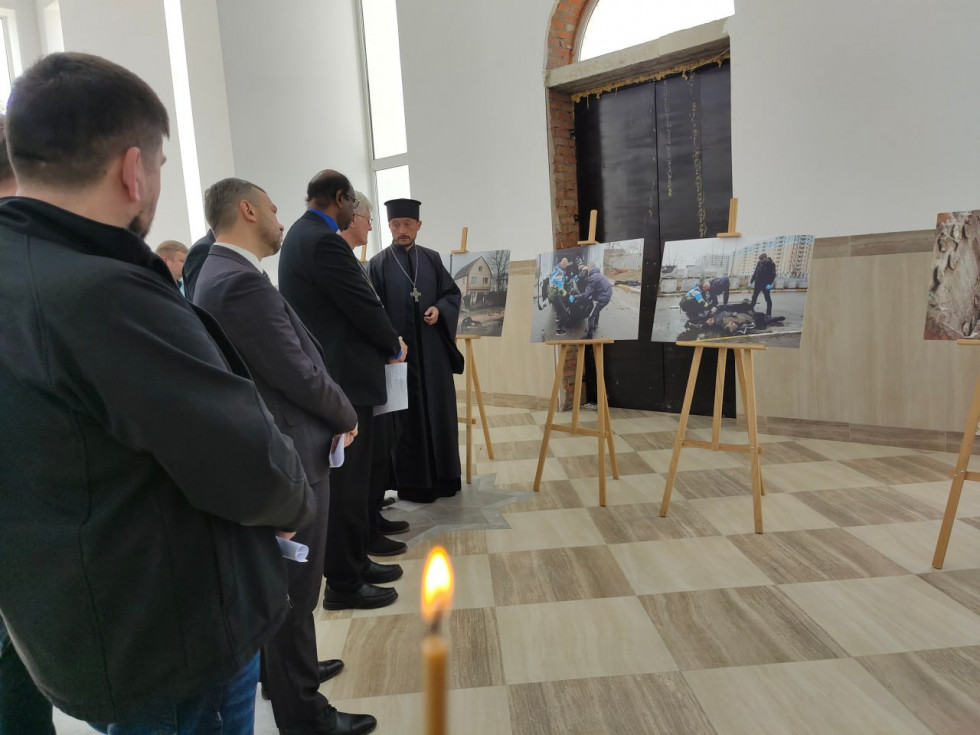 Представители ВСЦиРО вместе с делегацией ВСЦ осмотрели расположенную в храме фотовыставку о зверствах россиян в Буче. Иностранных гостей шокировало увиденное. Они были единодушны в том, что это преступления против человечности.
